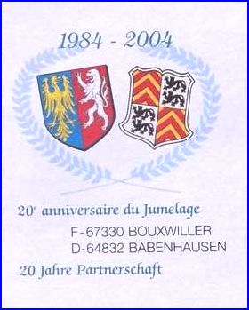 Parti: au 1er d'azur à l'aigle contournée d'or, au 2e de gueules au lion d'argent.