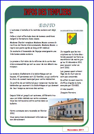 Plaquette de la mairie "Info sur les Templiers", novembre 2011.