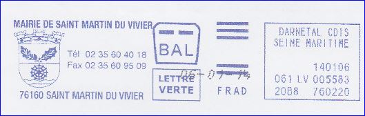 Coupé: au 1er d'or à la feuille de chêne englantée d'une pièce de sinople et posée en bande et à la feuille de houx du même fruitée de deux pièces de gueules et posée en barre, les tiges passées en sautoir, au 2e de gueules à la roue de moulin d'argent mouvant d'une fasce ondée abaissée du même.