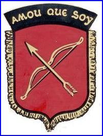 De gueules à l'arc posé en barre, à la d'une flèche posée en bande et brochante, le tout d'or.