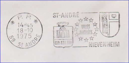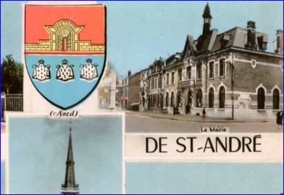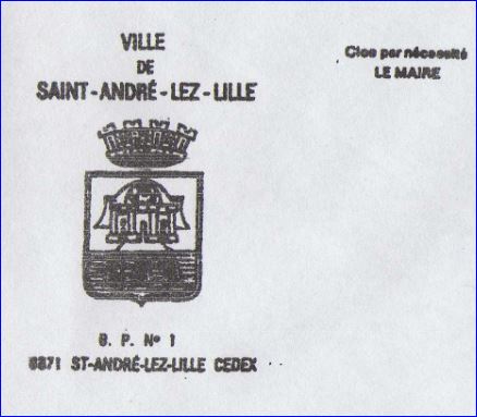 (déb. XXe s.) Coupé: au 1er de gueules à la porte de l'abbaye de Marquette d'or, au 2e d'azur à trois manteaux d'hermine soutenus chacun par une épée basse d'argent et rangés en fasce.