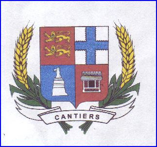 Écartelé: au 1er de gueules à deux léopards d'or, armés et lampassés d'azur, l'un au dessus de l'autre, au 2e d'argent à la croix engrelée d'azur, au 3e d'azur à la croix de calvaire du lieu ruinée d'argent sur son socle du même, au 4e de gueules au puits du lieu du champ, maçonné de sable, charpenté et couvert d'argent, ajouré de sable, la manivelle du treuil du même à senestre.