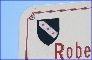De sable à la bande d'argent chargée de trois molettes à huit pointes de gueules.