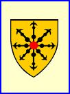 D'or au rais d'escarboucle de sable chargé en coeur d'un rubis de gueules.