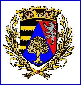 Tiercé en chapé: au 1er de sable à trois fasces d'or dentelées par le bas, au 2e d'azur au chêne d'or, au 3e de gueules au lion d'argent.