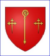 De gueules à la crosse abbatiale contournée d'or accostée de deux croisettes recroisetées au pied fiché de même.
