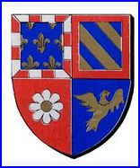 (1990) Écartelé: au 1er d'azur semé de fleurs de lis d'or, à la bordure componée d'argent et de gueules, au 2e bandé d'or et d'azur, à la bordure de gueules, au 3e de gueules à la fleur de huit pétales d'argent boutonnée d'or, au 4e d'azur à l'aigle contournée essorante d'or.