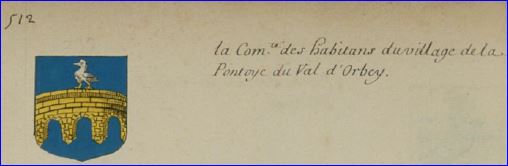 D'azur à un pont d'or, maçonné de sable, sommé d'une oie d'argent becquée et membrée d'or.