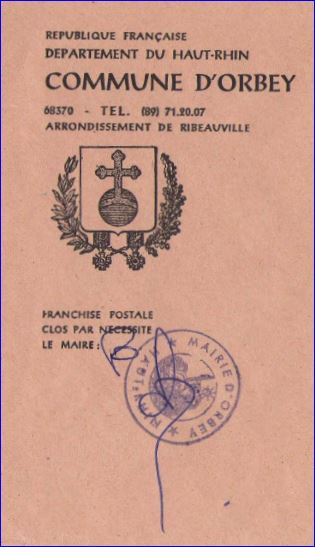 Enveloppe de mairie, 1982.