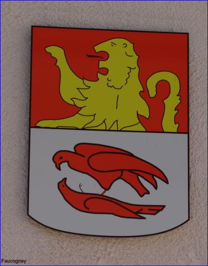 Blason sur la façade de la mairie.