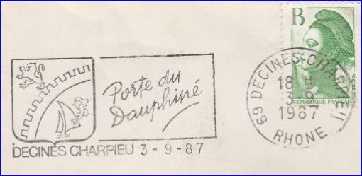 (1974) Taillé voûté: au 1er de gueules au lion d'argent, au 2e d'or au voilier d'argent et au dauphin d'azur barbé, crêté, lorré, oreillé et peautré de gueules brochant; à la cotice en barre voûtée d'azur crénelée de dix pièces, brochant sur la partition.
