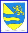 Tranché: au 1er d'azur au lion d'or, au 2e d'or à deux fasces ondées d'azur,