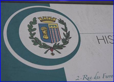 Panneau armorié au pied des murailles de Saint-Pol-sur-Ternoise (62).