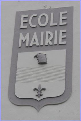 à une fasce surmontée d'une tête d'aigle et soutenue d'une fleur de lis. Ces armes sont encore sculptées au fronton de la mairie.