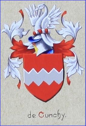 Écartelé: aux 1er et 4e de gueules à la fasce vivrée d'argent, aux 2e et 3e d'azur au chevron d'or accompagné de trois croisettes recroisetées au pied fiché du même.