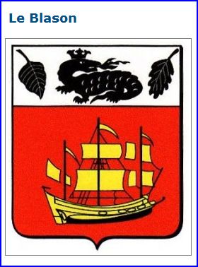 De gueules au trois-mâts d'or; au chef d'argent chargé d'une salamandre de sable accostée d'une feuille de hêtre à dextre et d'une feuille de chêne à senestre, toutes deux versées et du même.