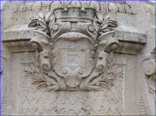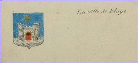 D'azur au château de deux tours d'argent, maçonné de sable, ouvert de gueules et coulissé de sable, sur une mer d'argent, surmonté d'une fleur de lis d'or.