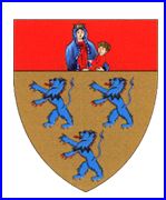 D'or à trois lionceaux d'azur, armés et lampassés de gueules; au chef de gueules chargé d'une Notre-Dame-de-Grâce de carnation à mi-corps, tenant l'Enfant Jésus de carnation, couronné d'or, le tout vêtu de gueules et d'azur.