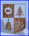 Écartelé: au 1er d'azur à la lame de scie circulaire d'or chargée d'un rabot à bois contourné d'azur, au 2e d'or au sapin arraché de sinople, au 3e d'or au clocher franc-comtois de sinople, au 4e d'azur au skieur de fond d'or.
