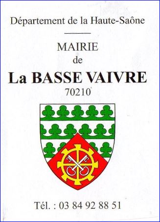 (2004) De gueules à la roue de moulin d'or, à deux clefs d'argent passées en sautoir brochant sur le moyeu; mantelé d'argent à trois fasces tréflées par le haut de sinople.