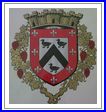 D'argent au chevron de sable accompagné de trois canettes du même; à la bordure de gueules chargée de huit fleurs de lis d'argent.