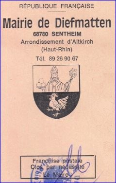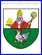 Coupé: au 1er d'argent à saint Nicolas issant de carnation, mitré d'or, vêtu pontificalement de gueules au pallium du champ chargé de trois croisettes latines de sable, tenant dans sa dextre un plateau chargé de trois pains et dans sa senestre une crosse posée en barre, le tout d'or, au 2e de sinople au coq hardi d'argent crêté, barbé de gueules, membré, becqué et langué d'or.
