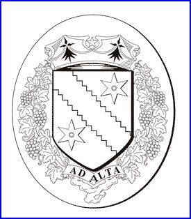 (1958) De gueules à la bande dentelée d'or accompagnée de deux molettes d'éperon du même.
