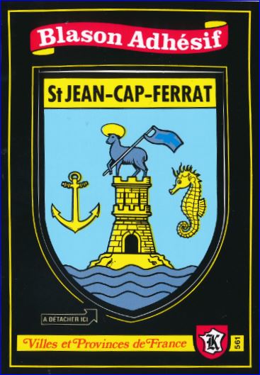 D'azur à la tour d'or sur un roc du même mouvant d'une mer du champ ondée d'argent, sommée d'un agneau pascal couché d'argent, nimbé d'or, portant une bannerette d'argent chargée d'une croisette de gueules, et accostée à d'une ancre marine dextre et d'un hippocampe à senestre, le tout d'argent.