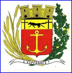 (1991) De gueules à l'ancre d'or; au chef du même chargé d'un loup passant de sable, accosté de deux croisettes latines fleurdelisées du même.