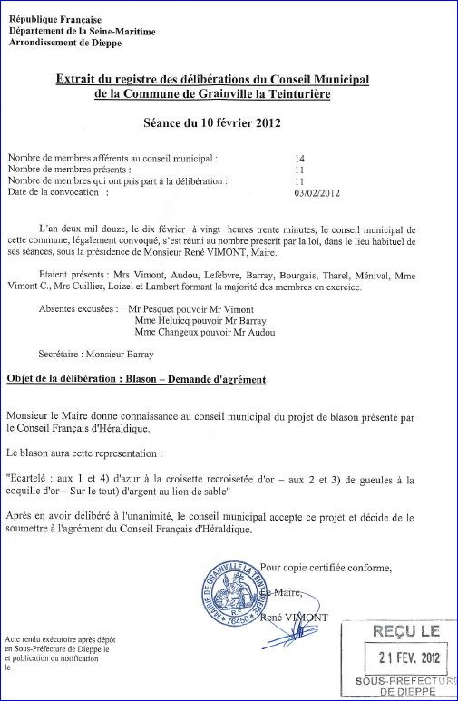 Extrait du registre des délibérations du 10 février 2012.