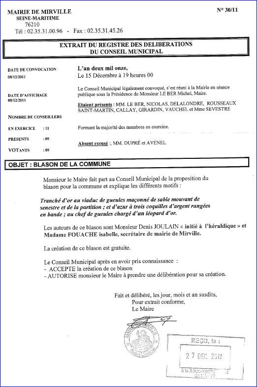Extrait du Registre des Délibérations du 15 décembre 2011.