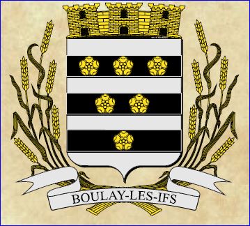 (1999) D'argent à trois fasces de sable chargées de six roses d'or, trois sur la première, deux sur la seconde et une sur la troisième.