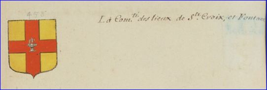 D'or à la croix de gueules, chargée en son coeur d'une fontaine d'argent.