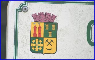 Écartelé: au 1er d'or à deux tours couvertes de gueules pavillonnées d'azur, au 2e de sinople à trois gerbes de blé d'or, au 3e de sinople à la roue de moulin d'or, au 4e d'or à deux pics de mineurs de sables passés en sautoir, soutenu d'un croissant du même.