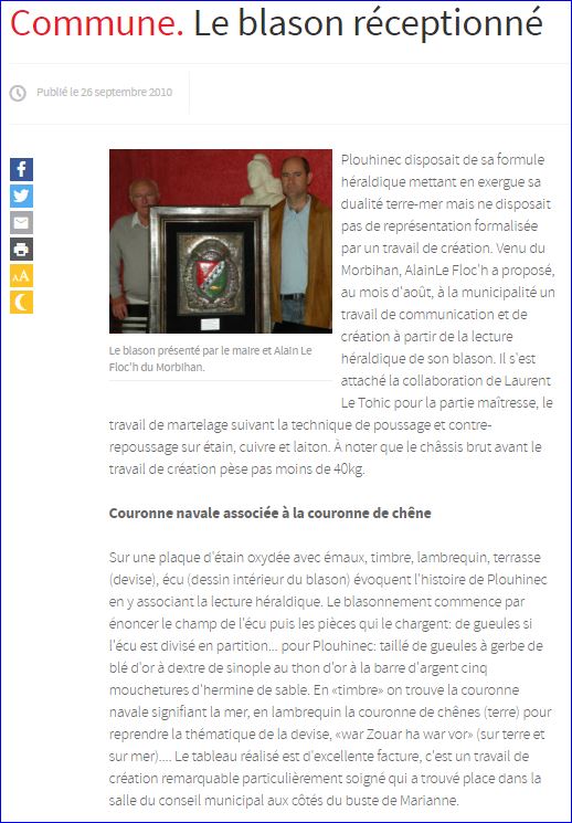 Article de presse Le Télégramme, 29 septembre 2010, sur le site du journal.