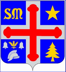 (1923) D'azur à la croix d'argent chargée d'une croix tréflée de gueules, et cantonnée: au 1er des lettres onciales S et M d'or, au 2e d'une étoile d'or, au 3e d'un casque romain contourné avec son cimier d'argent surmonté d'un bouquet de trois épis de blé, tigés, feuillés et liés d'or accostés de deux cloches d'argent, au 4e d'un sapin d'or.