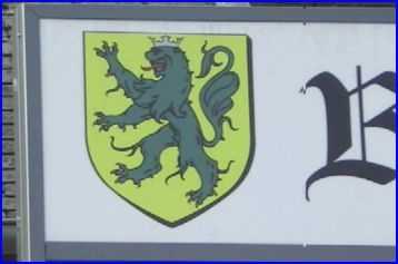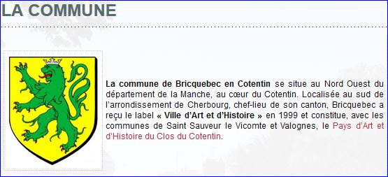 Panneau municipal (émission télévisée de Denis Joulain: "Les cinq minutes de l'héraldique normande" du 19/11/2011 sur TVNC; cf lien)