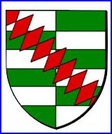 (1991) Fascé contre-fascé d'argent et de sinople; à la bande fuselée de gueules, brochant sur le tout.