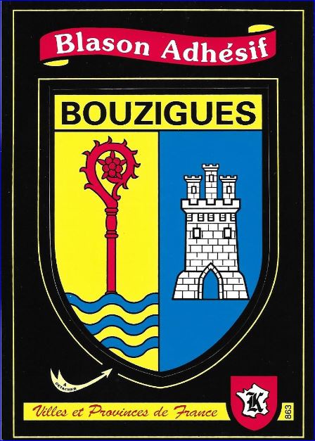 (2003) Parti: au 1er d'or à la crosse contournée de gueules mouvant de trois trangles ondées d'azur en pointe, au 2e d'azur à la tour donjonnée de trois pièces d'argent, maçonnée de sable et ouverte du champ.