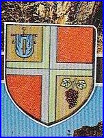 (1985) Écartelé: au 1er d'or au manteau gonfaloné d'azur chargé d'une épée du champ, au 2e de gueules à chapelle campanée d'argent, ouverte et ajourée de sable, posée en perspective, au 3e de gueules au navire de sable habillé et pavillonné d'argent, au 4e d'or à la grappe de raisin de gueules feuillée de sinople.
