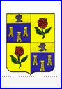 Écartelé: aux 1er et 4e d'azur à trois tours d'or, ouvertes, ajourées et maçonnées de sable, au chef d'or chargé d'un heaume de sable taré de profil, aux 2e et 3e d'or à la rose de gueules tigée et feuillée de sinople.