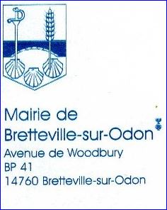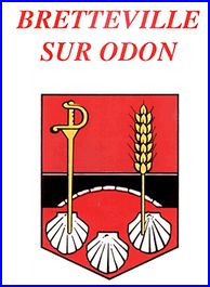 (1978) De gueules au pont de sable, l'arche empierrée d'argent, soutenu de trois coquilles d'argent, 2 et 1, à l'épée basse de bretteur d'or brochant à dextre et à l'épi de blé tigé du même brochant à senestre.