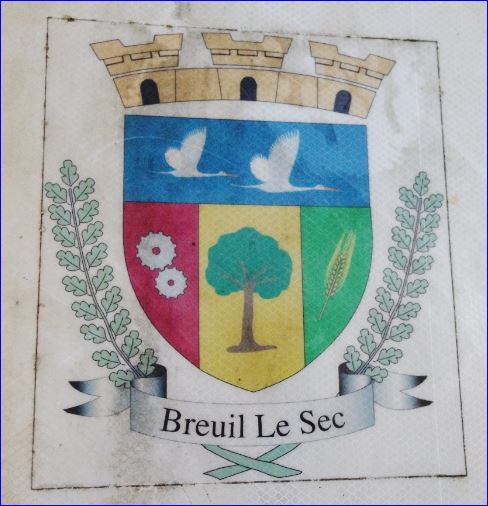 Tiercé en pal: au 1er de gueules à deux roues d'engrenage d'argent accolées en bande, au 2e d'or à l'arbre au naturel, au 3e de sinople à l'épi de blé d'or posé en barre; le tout sommé d'un chef d'azur chargé de deux cigognes contournées, volant au naturel, rangées en bande, celle de dextre plus petite.