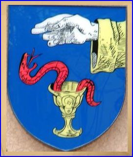 D'azur au dextrochère bénissant de saint Jean l'Évangéliste d'argent paré d'or, mouvant du flanc senestre en chef, au calice d'or d'où isse un serpent tortillé de gueules.