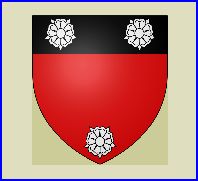 De gueules au chef de sable; à trois roses d'argent, deux chargeant le chef et une la pointe de l'écu.