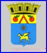 D'azur au cheval ailé d'or, surmonté d'un soleil de dix rais d'or, éclipsé de gueules; au chef d'or chargé d'un chevron de gueules accompagné de deux pommes du même feuillées de sinople.
