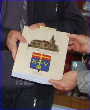 D'azur à la croix de Lorraine d'or, accostée des lettres capitales B et V du même, soutenue du sceau d'or de l'ordre du Temple; au chef cousu de gueules à la croix d'or.