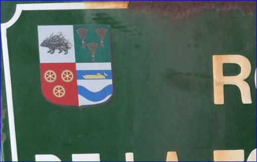 (1996) Écartelé: au 1er d'argent au porc-épic de sable, au 2e de sinople à trois gerbes d'or, au 3e de gueules à trois roues d'engrenage d'or, au 4e d'argent à deux fasces d'azur, la première chargée d'une péniche d'or, la seconde ondée.