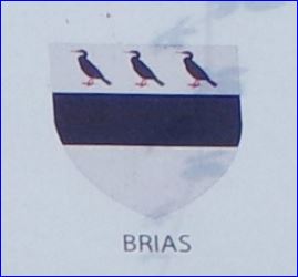 D'argent à la fasce de sable, surmontée de trois cormorans du même, becqués et membrés de gueules, rangés en fasce.
