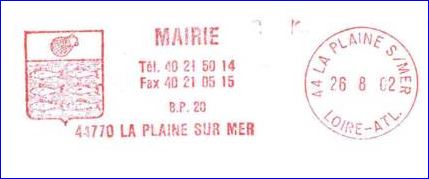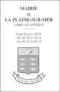 (1946) D'azur à six poissons d'argent posés en fasce et ordonnés 2, 2 et 2; au chef d'or chargé d'une coquille de lime [mollusque bivalve à coquille arrondie] de sable veinée d'argent posée en barre.